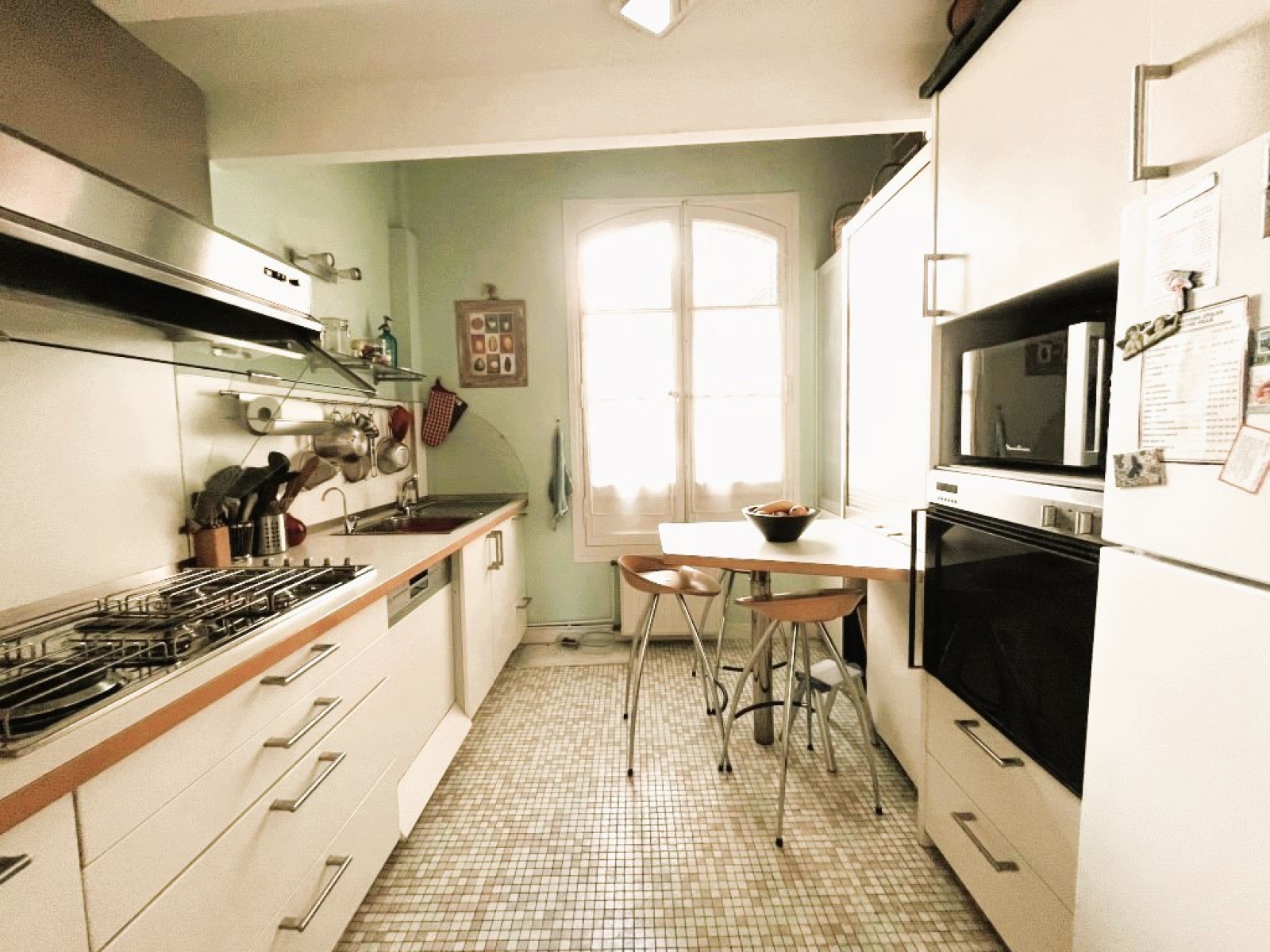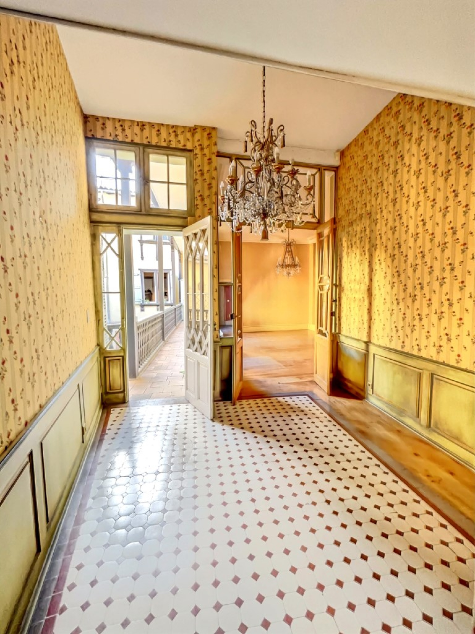 Cet appartement d'une superficie de 130 m² (153 m² au sol) , traversant, est situé au premier étage de l'immeuble, avec ascenseur, exposé sur cours et comprend une belle entrée, qui dessert un séjour de 32 m², une salle à manger, une cuisine équipée, trois chambres, une salle de bains, une salle d'eau, WC et chaufferie et en duplex, un coin bibliothèque, une chambre et une buanderie .
