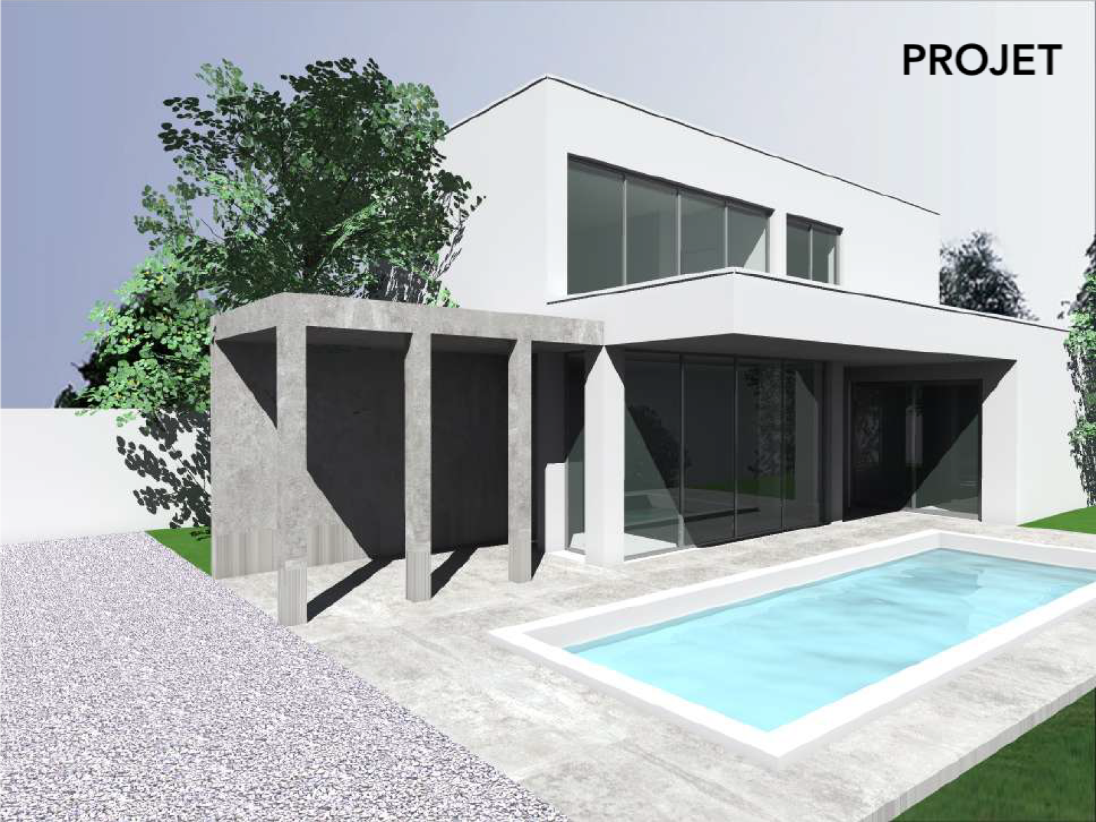 Ce terrain sera cédé avec un permis de construire. Le projet consiste en la construction d'une maison individuelle contemporaine à toiture terrasse. Le nouveau bâtiment se composera de deux niveaux. Le rez-de-chaussée accueillera une partie à vivre, une chambre avec salle de bain ainsi qu'un WC. La façade OUEST donnera sur une terrasse avec piscine. L'étage se composera d'un espace nuit de trois chambres avec salle de bain. Un garage sera en crée en limite de propriété. Surface plancher : 148 m2
