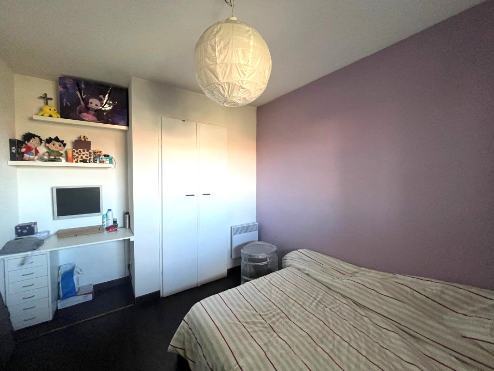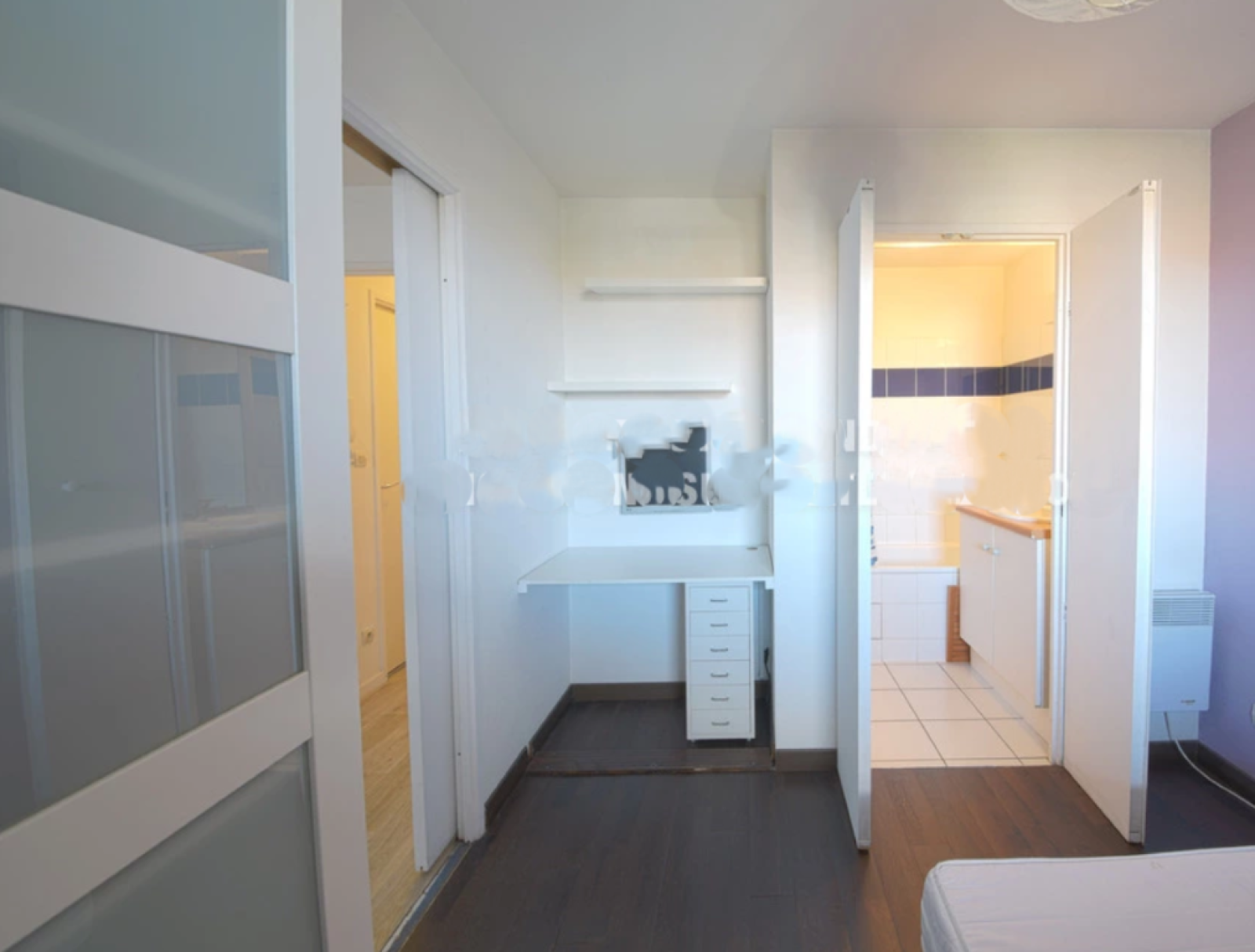 Situé au 2ème et dernier étage de l'immeuble, sans ascenseur, il se compose d'une entrée avec placard, un séjour ouvrant sur une terrasse, une cuisine équipée et aménagée ouverte sur le séjour, une chambre avec coin bureau et placard, une salle de bains et WC séparé.